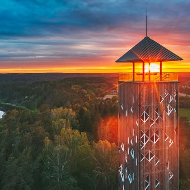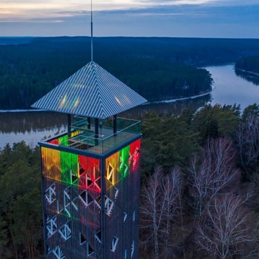Atraskite Birštono apžvalgos bokšto architektūrinę idėją: nuo baltiškų ženklų fasade iki Pasaulio medžio simbolikos. Sužinokite, kaip architektai D. Malinauskas ir V. Putna sujungė gynybinę tradiciją su šiuolaikine estetika. Birštono apžvalgos bokštas
