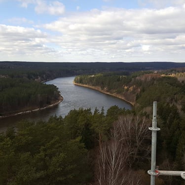Priešais šį milžiną įrengta atokvėpio aikštelė su stendu, kur galite susipažinti su Nemuno kilpų regioninio parko grožybėmis dar prieš pradedant savo 45 metrų kopimą.