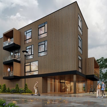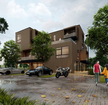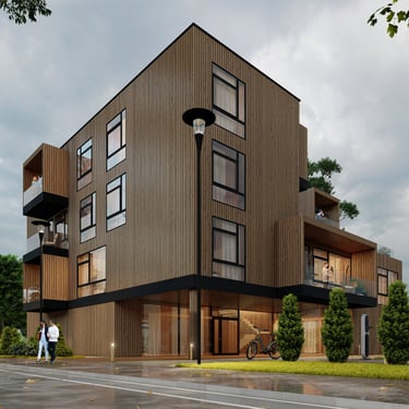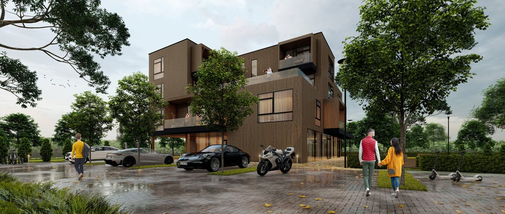 Šis modulinis daugiabutis – tai progresyvus požiūris į tvarią statybą Lietuvoje, užtikrinantis greitą montavimą, puikią akustiką ir estetinį vientisumą.
